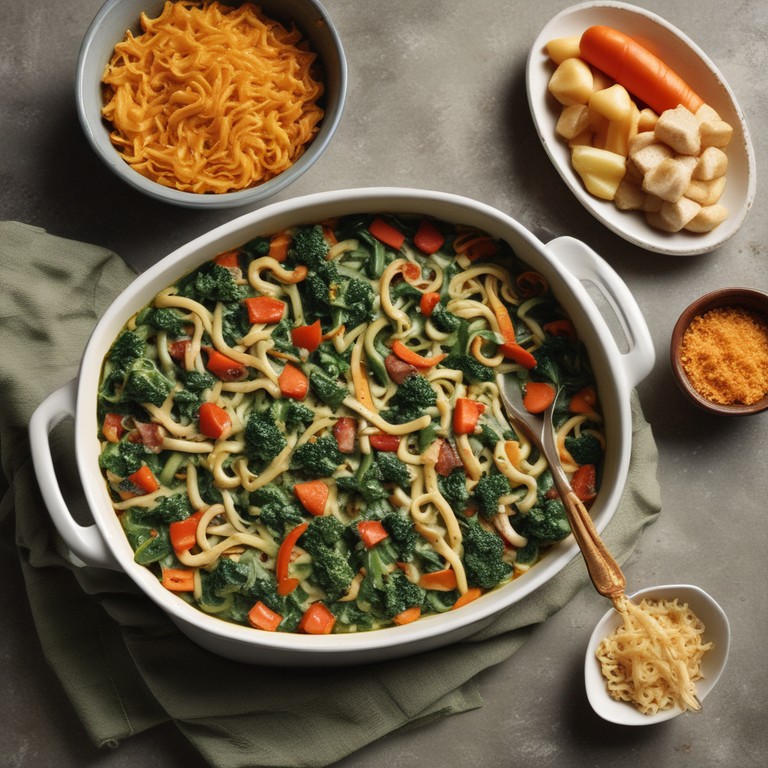 Spinat-Nudelauflauf mit Sahne und Gemüse