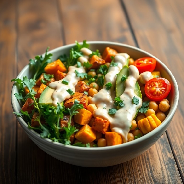 - Mediterrane Süßkartoffel-Bowl mit Tahini-Dressing