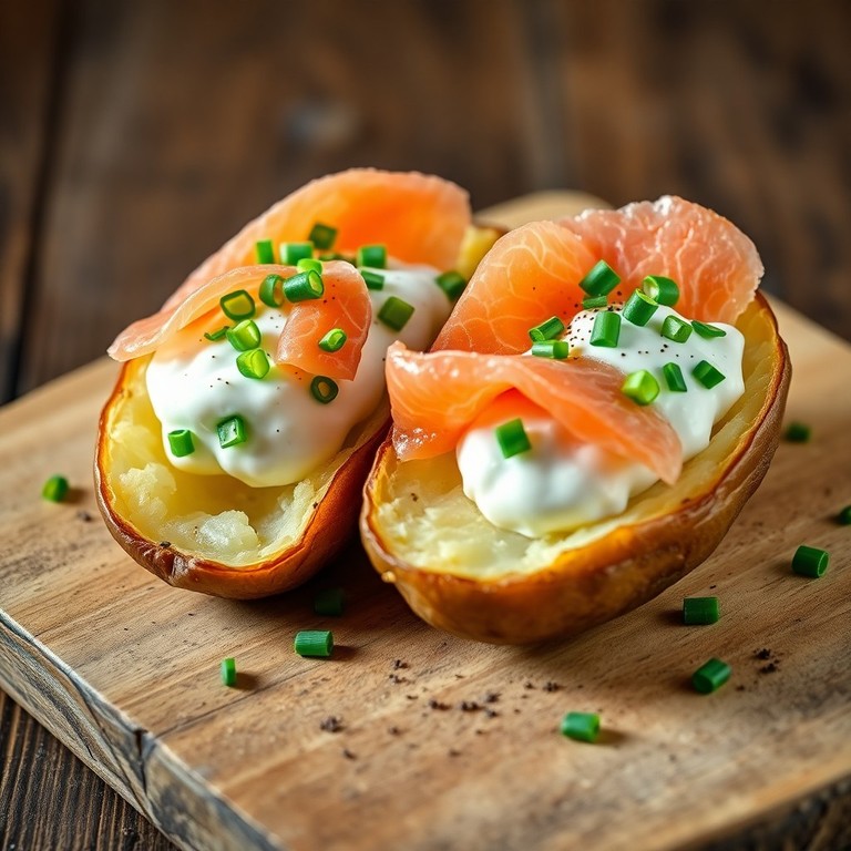 - Gefüllte Kartoffelhälften mit Lachs und Kräuterquark
