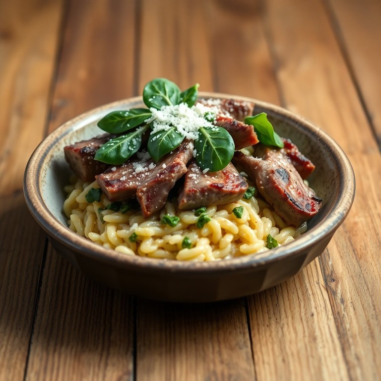 Spinat-Risotto mit Taubenfleisch