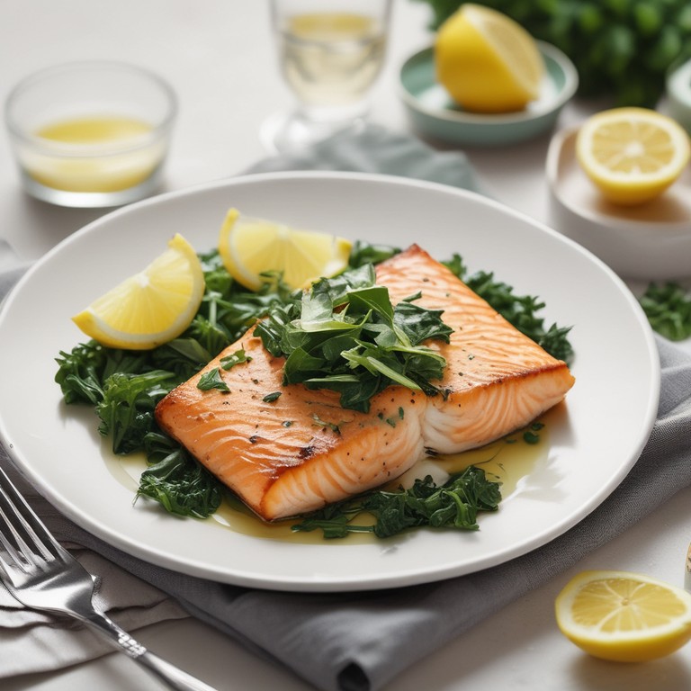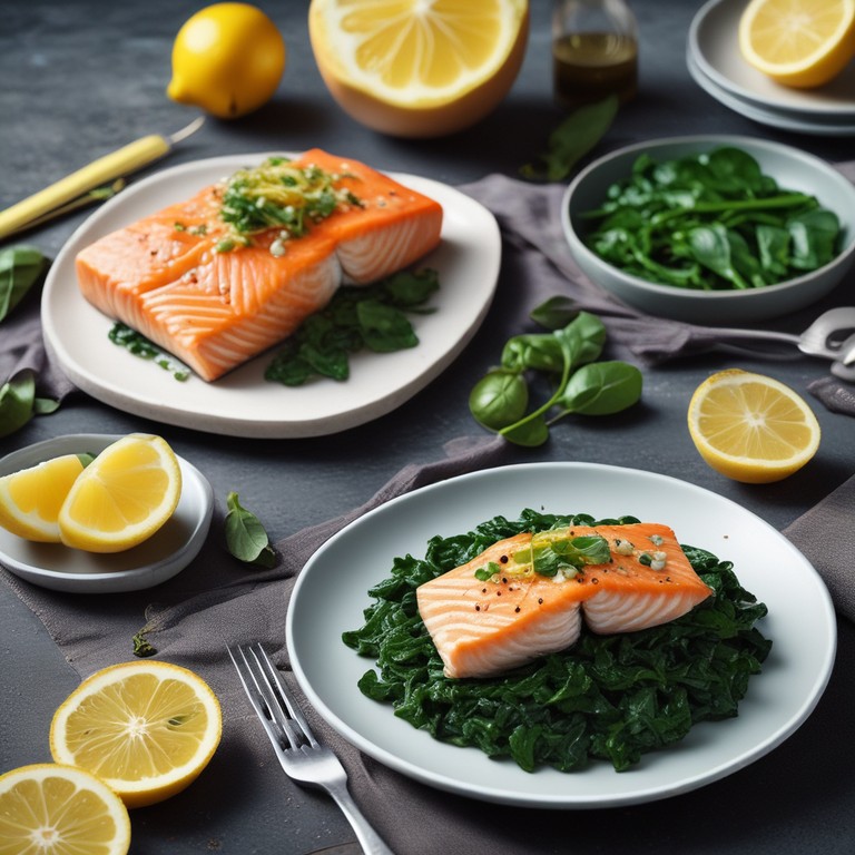 Лосось с шпинатом и лимонным соусом