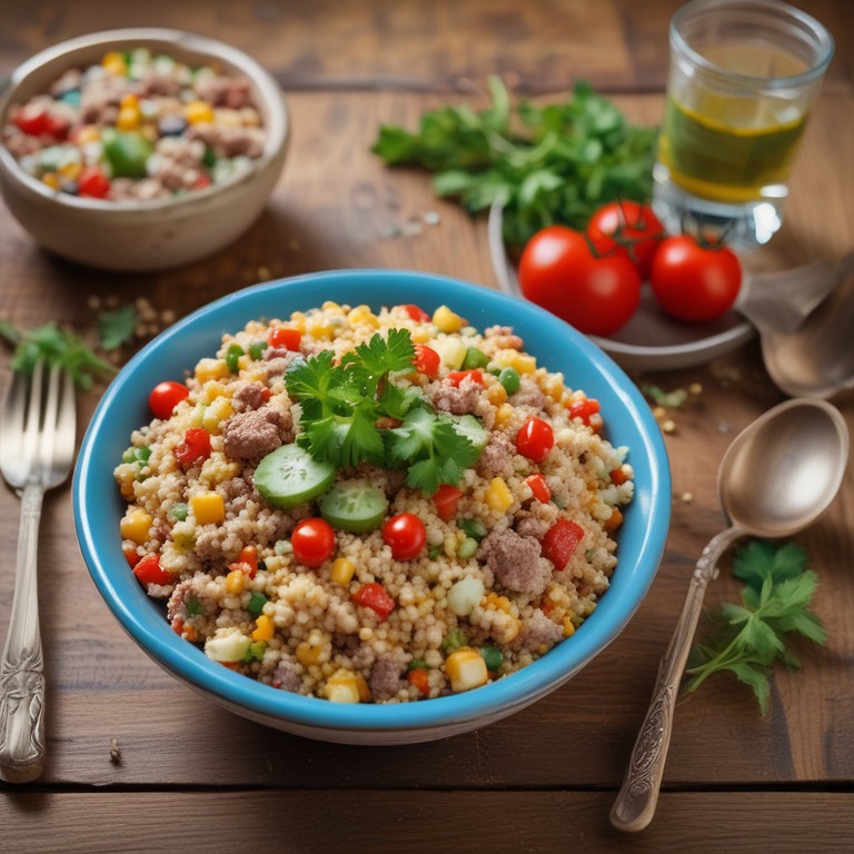 Couscous-Salat mit Hackfleisch und frischem Gemüse