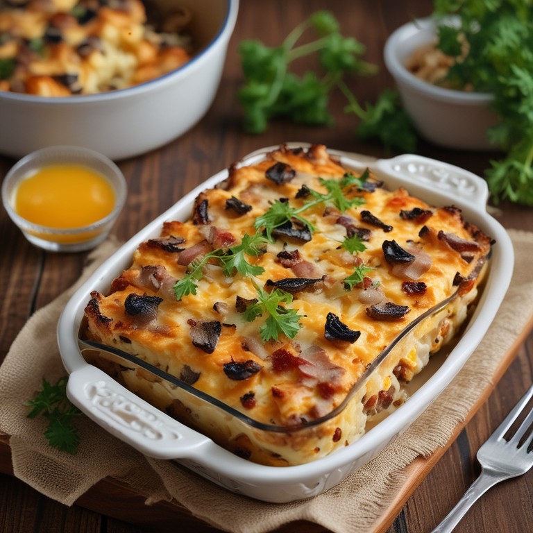 - Cheesy Breakfast Strata with Bacon and Mushrooms