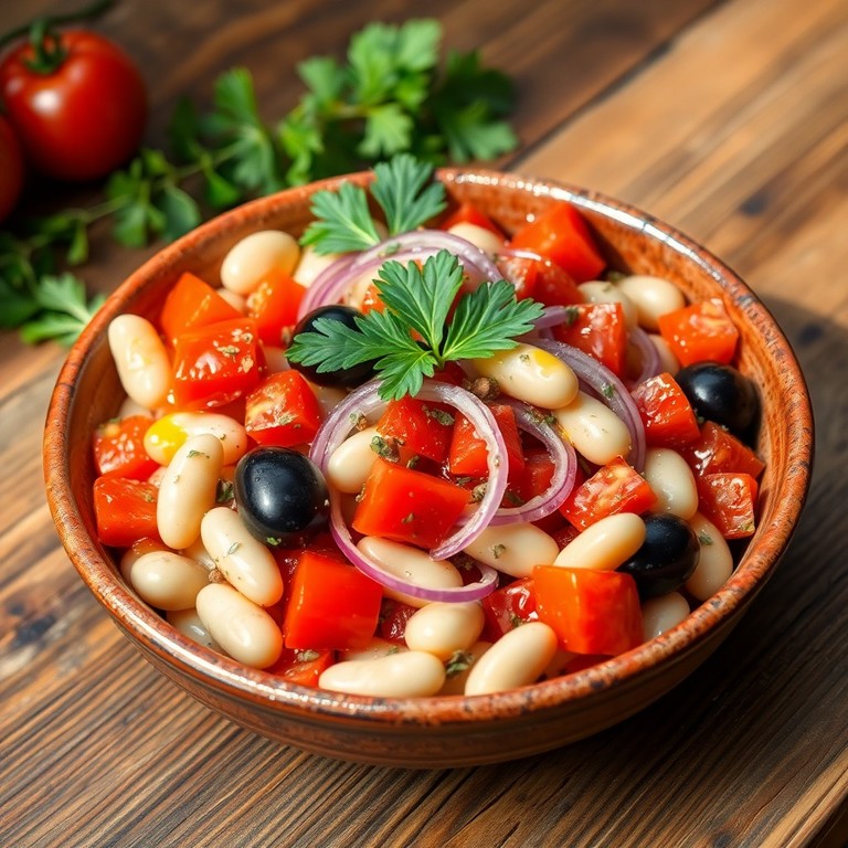 Insalata di Fagioli e Cipolle alla Mediterranea con Pomodori e Olive