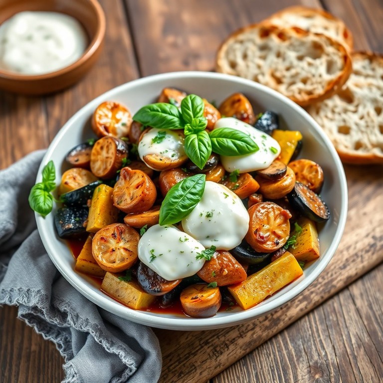 Herzhafte Topinambur-Champignon-Pfanne mit Aubergine und Zucchini