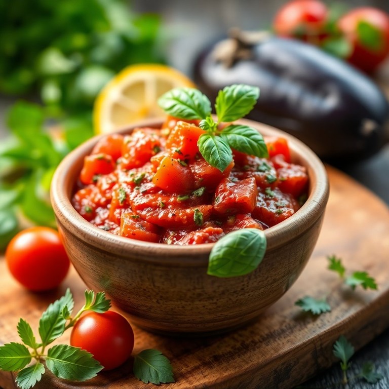 Mediterrane Auberginenpaste mit Tomaten und Kräutern