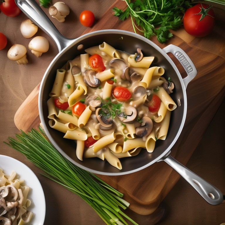 Nudeln mit Käse-Pilz-Tomaten-Sauce