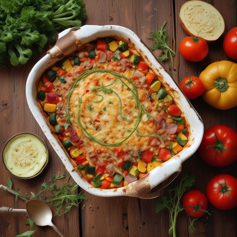 Herzhafter Gemüseauflauf mit Lauch, Kürbis, Zucchini und Tomaten