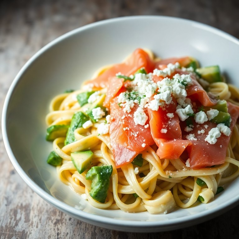 - Cremige Lachs-Avocado Pasta mit würzigem Schafskäse