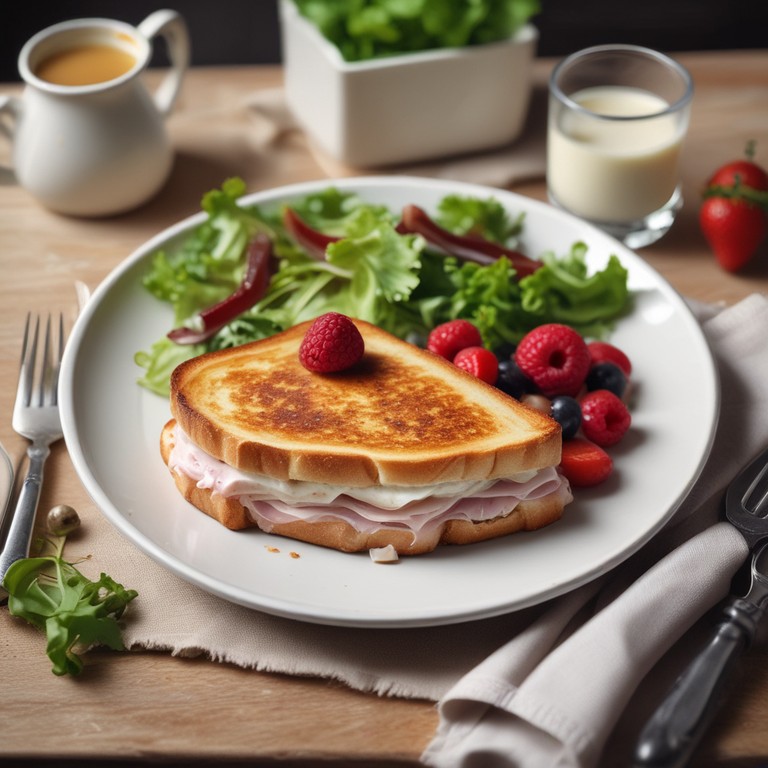 Croque-Monsieur et Salade Fraîche aux Fruits Rouges avec Coulis de Fromage Blanc