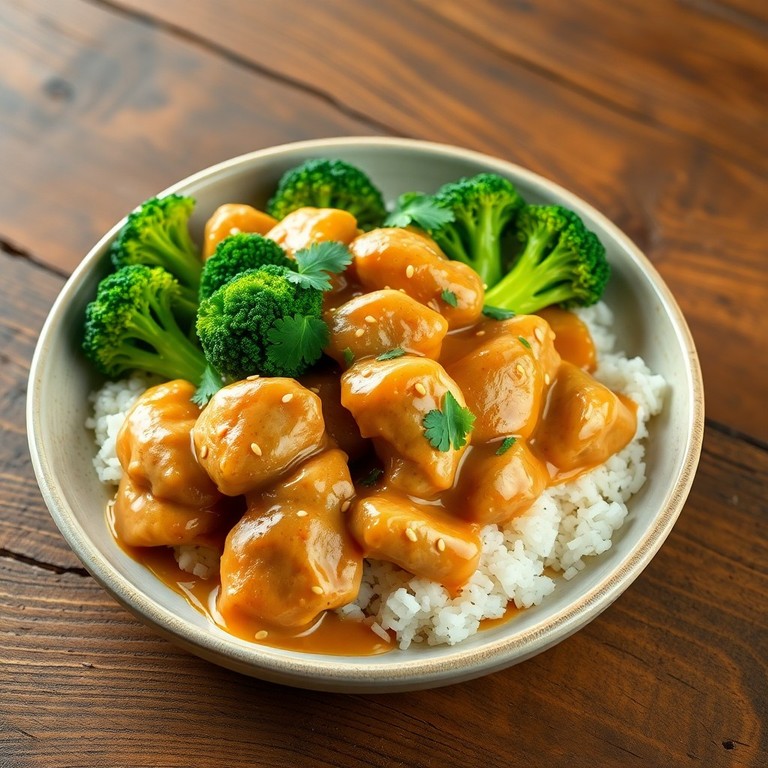 Hähnchen mit Erdnusssauce und Brokkoli