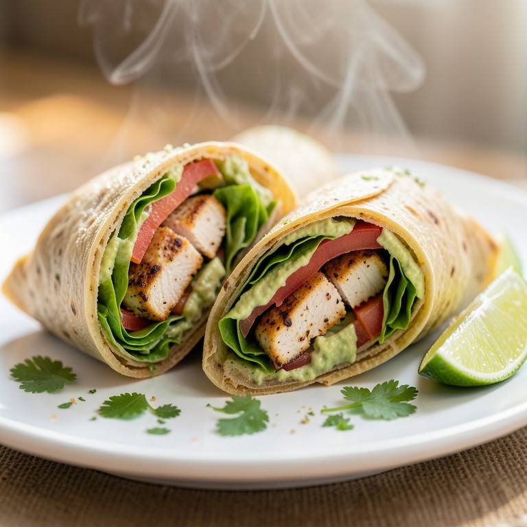 Herzhafter Vollkorn-Hähnchen-Wrap mit Avocado-Creme