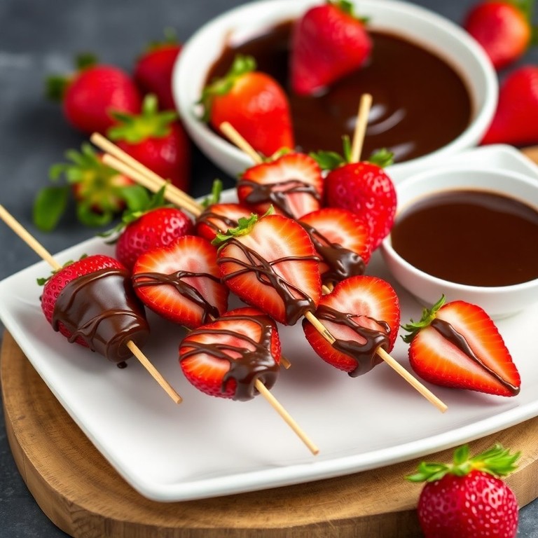 Brochetas de Fresas con Salsa de Chocolate