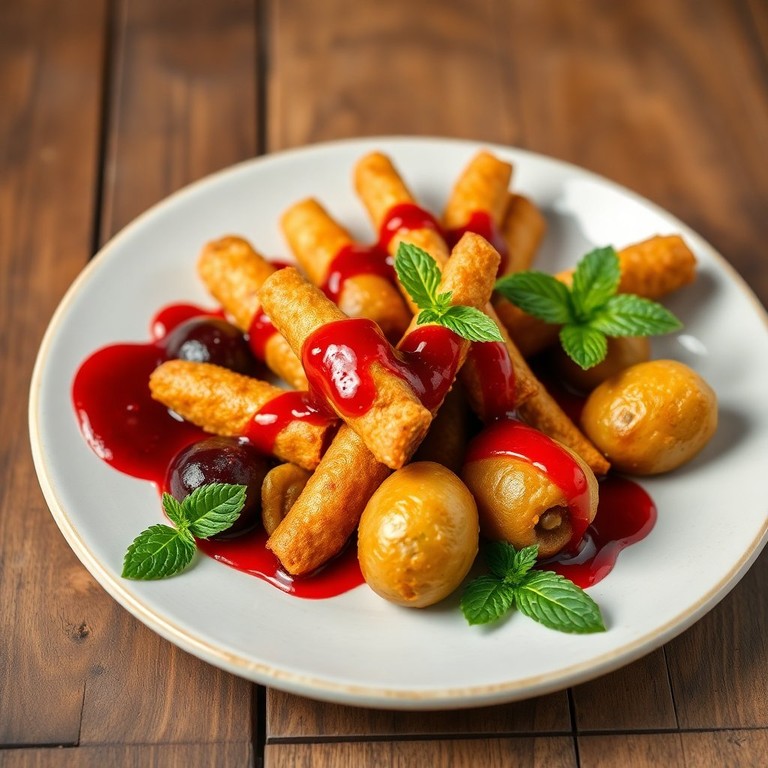 Cigarette-Style Olive Bites with Berry Drizzle