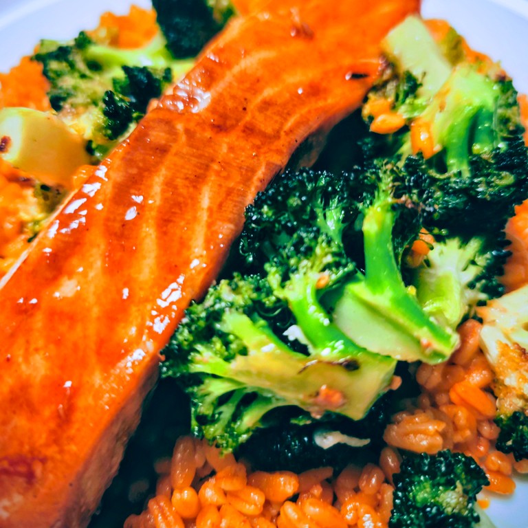 Asiatisch Glasierter Lachs mit Rundkornreis und Brokkoli aus dem Airfryer