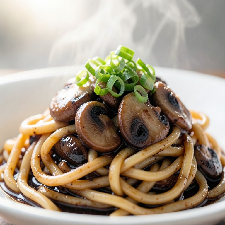 Japanische Pilzpfanne mit Udon-Nudeln