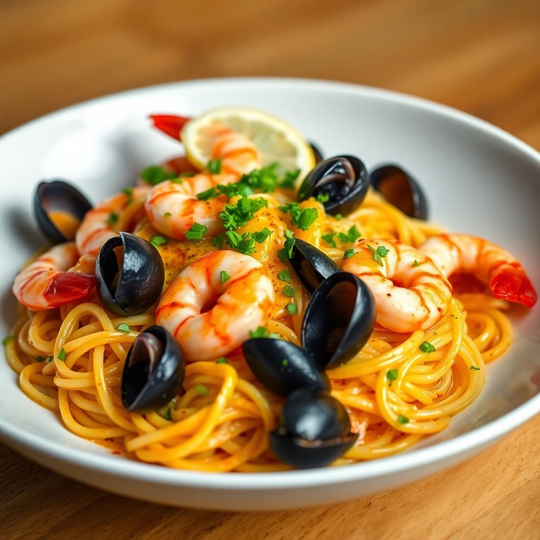 - Aromatische Meeresfrüchte-Pasta mit intensivem Fischfond