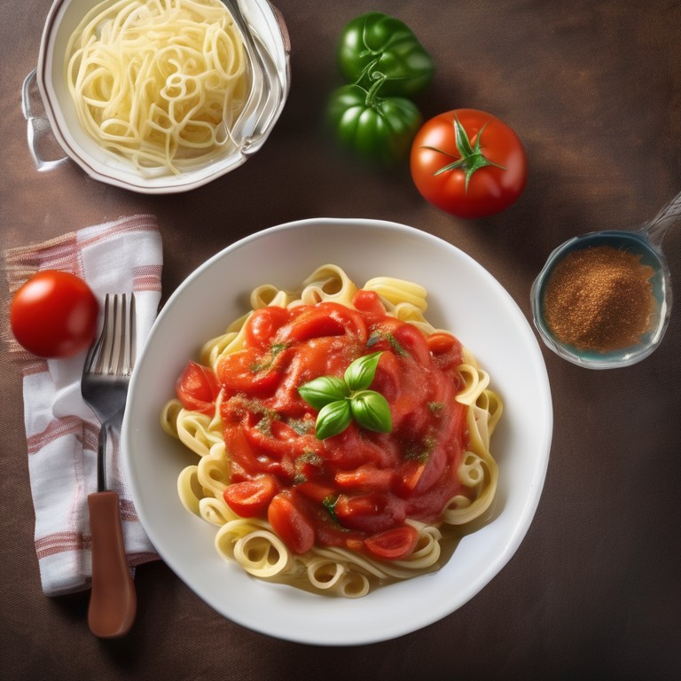 Ein einfaches und köstliches Gericht mit Nudeln und passierten Tomaten.