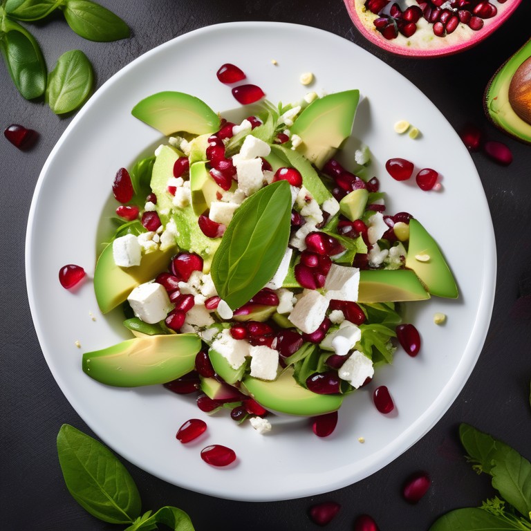 Ein erfrischender Avocado-Salat mit süßen Granatapfelkernen und herzhaftem Feta-Käse. Perfekt als leichtes Mittagessen oder als Beilage.