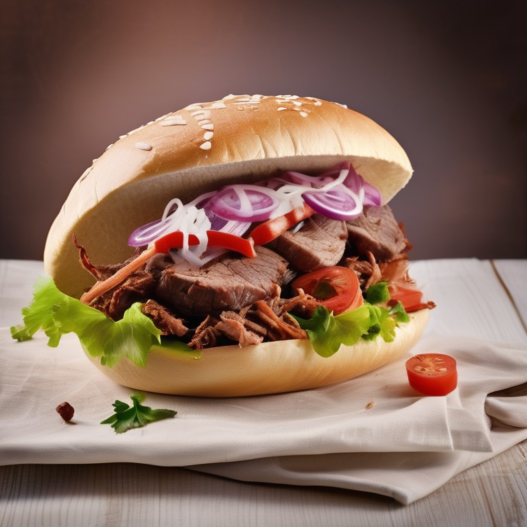 Ein herzhafter und köstlicher Doner Kebab mit würzigen Zwiebeln und cremiger Sahne, perfekt für eine leckere Mahlzeit.