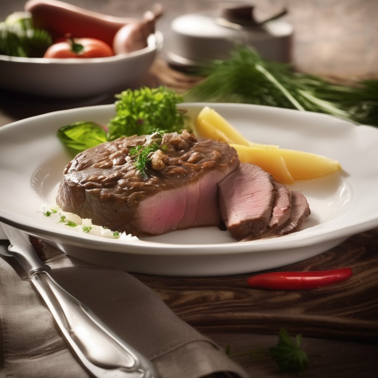 Ein köstliches Gericht mit zartem Rindfleisch und würziger Meerrettichsoße. Perfekt für besondere Anlässe oder gemütliche Abendessen.