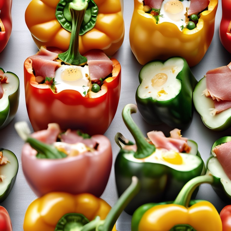 Gefüllte Paprika mit einer köstlichen Mischung aus Käse, Ei, Gurke und Kochschinken.