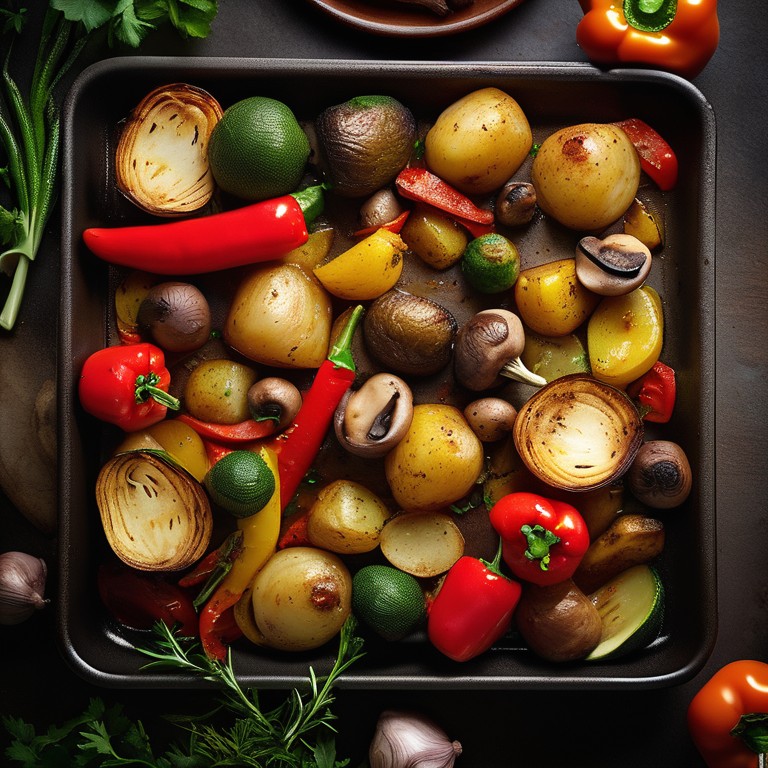 Ein köstliches und gesundes Ofengemüse mit Kartoffeln, Zucchini, Paprika und Champignons. Perfekt als Beilage oder Hauptgericht.