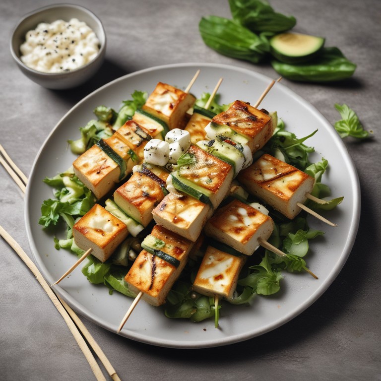 Gegrillte Tofu-Zucchini-Spieße mit Feta sind eine köstliche vegetarische Option für Grillpartys oder als Hauptgericht. Die Kombination von würzigem Tofu, gegrillter Zucchini und cremigem Feta-Käse sorgt für ein geschmackvolles Erlebnis.