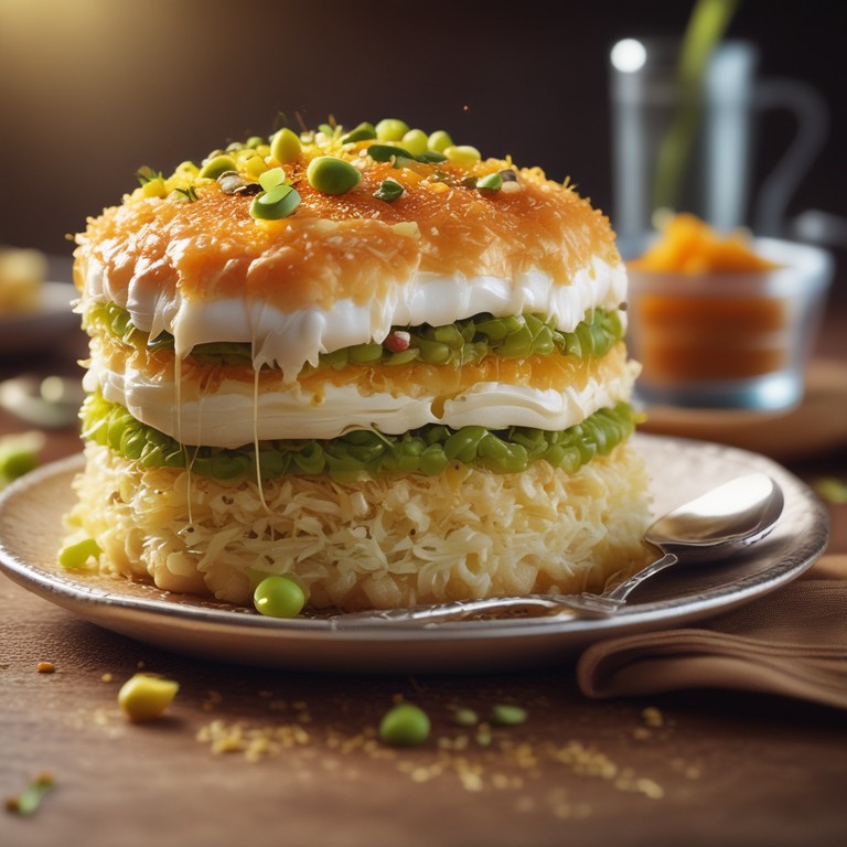 A delightful Middle Eastern dessert featuring a perfect balance of sweet and savory flavors. Knafeh is a luscious pastry made with fine vermicelli-like pastry threads, sweet cheese, and a drizzle of aromatic syrup.