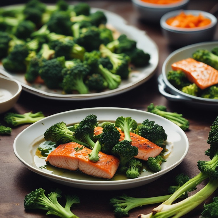 Ein köstliches asiatisches Gericht mit zartem Lachs, knackigem Brokkoli und einer würzigen Sauce, das im Ofen zubereitet wird. Die Kombination aus Sojasauce, Honig, Ingwer und Knoblauch verleiht diesem Gericht einen einzigartigen Geschmack. Perfekt für ein gesundes Abendessen oder ein besonderes Mittagessen.