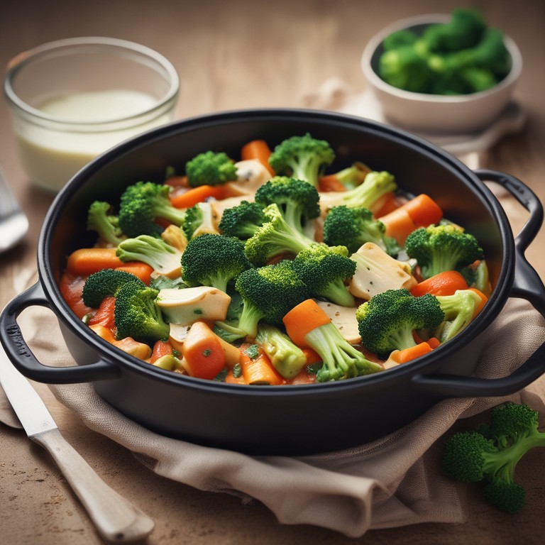 Diese Gemüsepfanne mit cremiger Sauce ist ein köstliches vegetarisches Gericht ohne Tomaten und Brokkoli. Die Kombination aus Zucchini, Paprika, Champignons und einer würzigen Sahnesauce macht dieses Gericht zu einem wahren Genuss. Perfekt für ein schnelles und gesundes Abendessen.