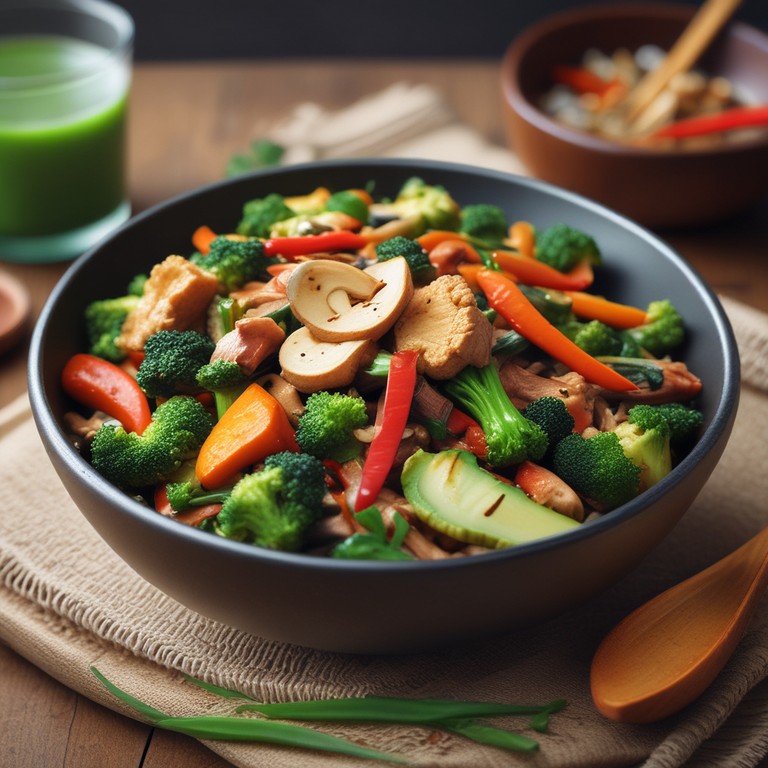 Diese asiatische Gemüsepfanne ist ein köstliches vegetarisches Gericht, das mit wenigen Zutaten zubereitet wird. Die Kombination aus frischem Gemüse, aromatischen Gewürzen und cremiger Kokosmilch verleiht diesem Gericht einen einzigartigen Geschmack. Perfekt für alle, die eine leichte und dennoch köstliche Mahlzeit ohne Fleisch und Tomaten genießen möchten.