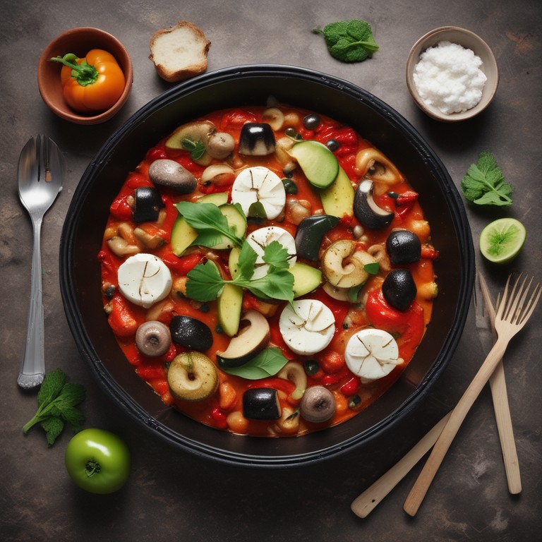 Diese vegetarische Gemüsepfanne ist ein gesundes und köstliches Gericht, das einfach zuzubereiten ist. Sie enthält eine Vielzahl von frischem Gemüse, das in einer würzigen Tomatensauce geschmort wird. Der Feta-Käse verleiht dem Gericht eine cremige und salzige Note. Perfekt für Vegetarier und Gemüseliebhaber!