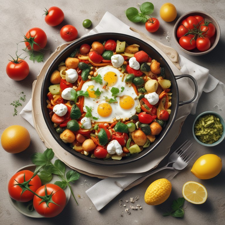 Diese mediterrane Gemüsepfanne mit Feta und Pesto ist ein köstliches und farbenfrohes Gericht, das mit einer Vielzahl von frischen Zutaten zubereitet wird. Die Kombination aus saftigem Gemüse, cremigem Joghurt, würzigem Feta und aromatischem Pesto verleiht diesem Gericht einen einzigartigen Geschmack. Servieren Sie es mit Spiegeleiern und Zitronenscheiben für eine vollständige Mahlzeit. Perfekt für ein genussvolles Essen mit mediterranem Flair!