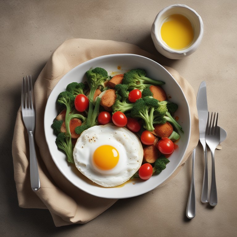 Ein einfaches und gesundes Abendessen, das schnell zubereitet ist. Die Kombination aus frischem Gemüse, Eiern und saurer Sahne sorgt für eine leckere Mahlzeit.