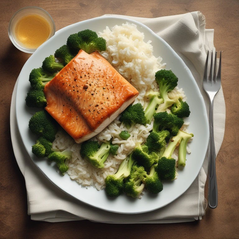 Ein köstliches Gericht mit gebratenem Lachs, knackigem Brokkoli und aromatischem Reis. Die Kombination aus zartem Fisch, gesundem Gemüse und würzigem Reis macht dieses Gericht zu einem echten Genuss. Perfekt für ein gesundes und leckeres Abendessen.