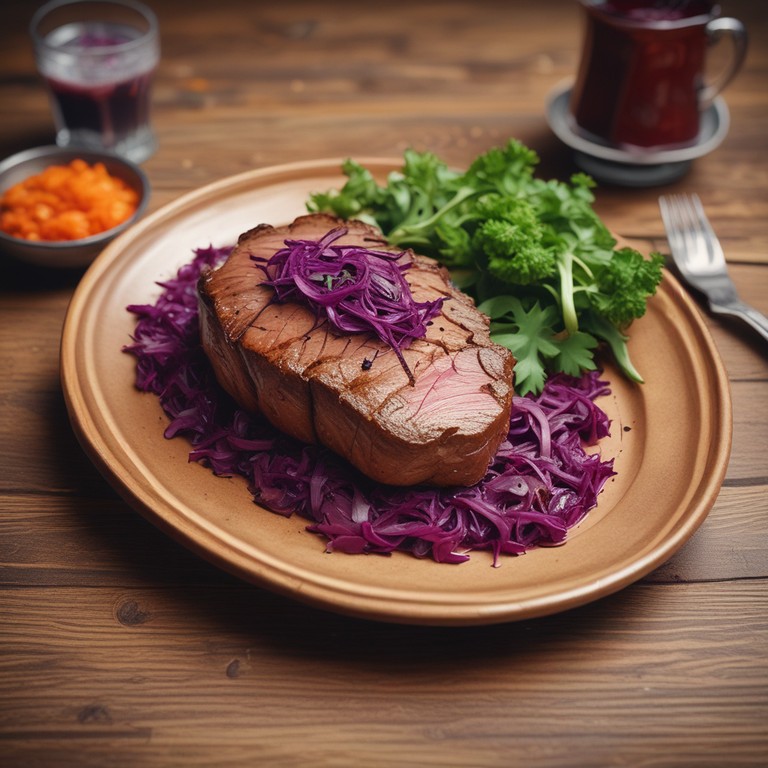 Dieses klassische deutsche Gericht kombiniert zarten Rinderbraten mit würzigem Rotkraut, das perfekt zu den herzhaften Aromen des Fleisches passt. Ideal für festliche Anlässe oder ein gemütliches Familienessen.