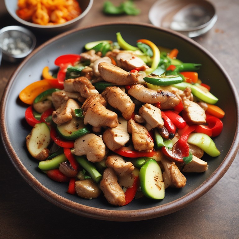 Dit gerecht is een heerlijke en gezonde roerbakschotel met kip en verse groenten. Het is snel te bereiden en vol van smaak, perfect voor een doordeweekse maaltijd.