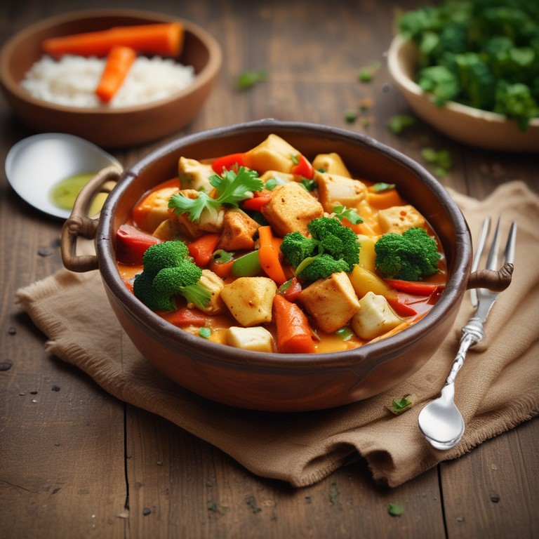 Este delicioso curry de pollo y vegetales es una explosión de sabores y colores, ideal para una presentación gourmet. La combinación de especias y la cremosidad de la leche de coco hacen de este plato una experiencia culinaria única.