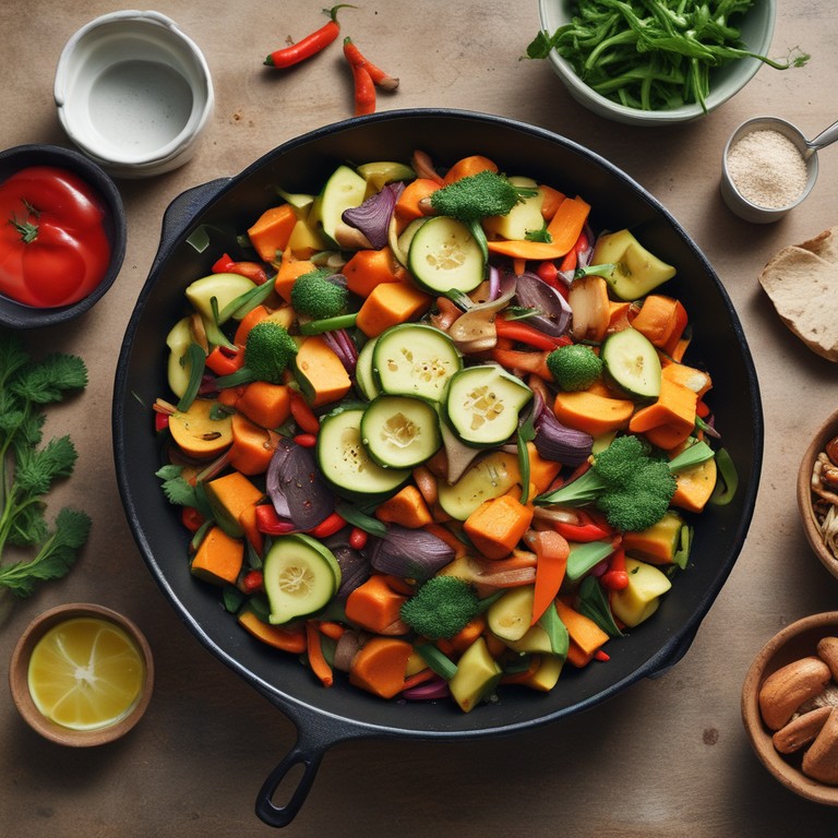 Zucchini-Süßkartoffel-Pfanne mit Gewürzen