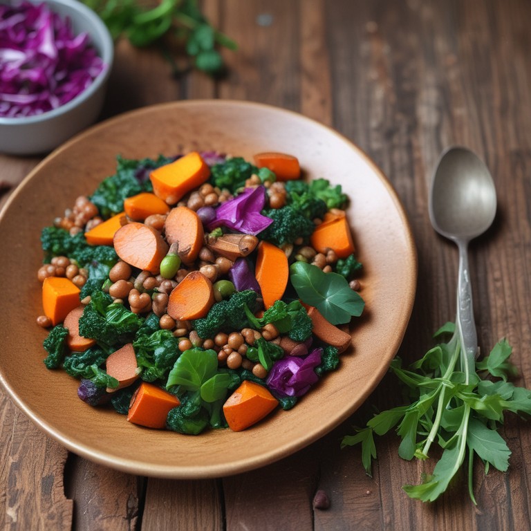 Bunte Gemüse-Linsen-Pfanne mit Süßkartoffeln