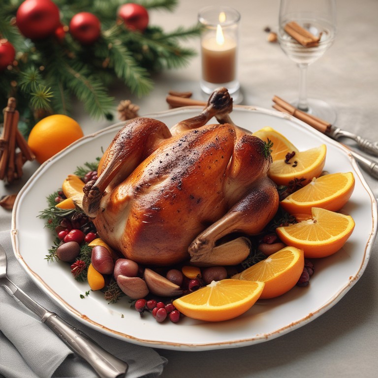 Diese weihnachtliche Ente wird mit einer köstlichen Orangen-Glasur und aromatischen Gewürzen zubereitet. Sie ist perfekt für ein festliches Weihnachtsessen und beeindruckt mit ihrem saftigen Fleisch und der knusprigen Haut.