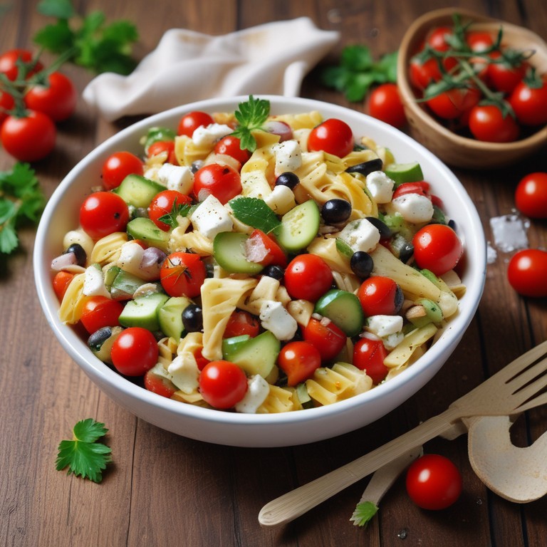 Ein erfrischender mediterraner Nudelsalat, perfekt für warme Tage. Mit saftigen Cocktailtomaten, knackiger Gurke und würzigem Feta-Käse ist dieser Salat nicht nur lecker, sondern auch schnell zubereitet.