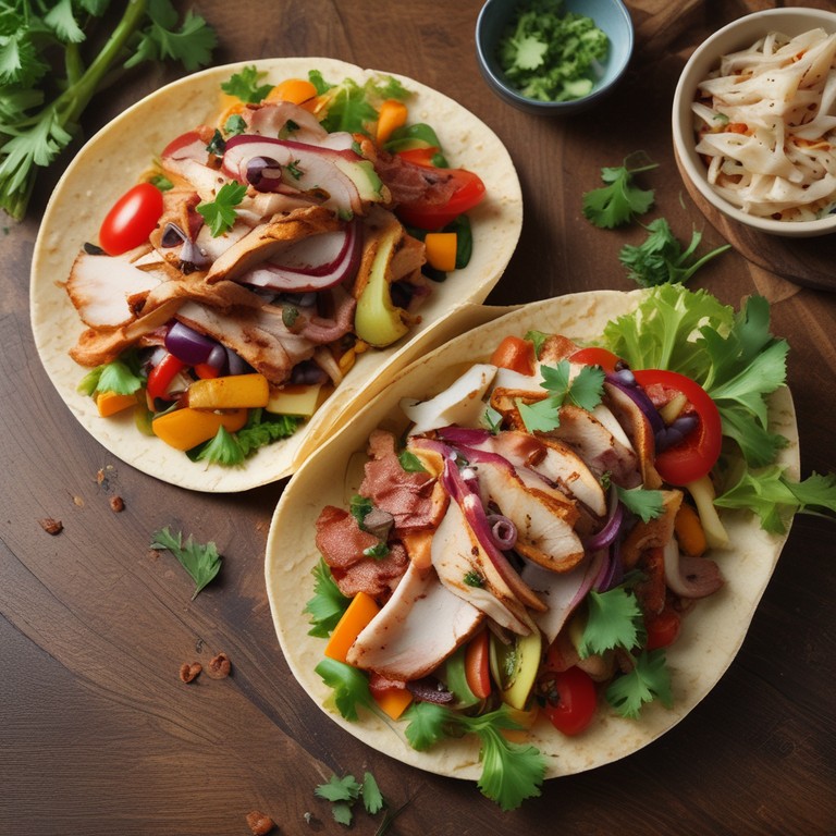 Una deliciosa receta de tacos que combina pollo y verduras frescas al estilo mediterráneo, perfecta para una comida saludable y sabrosa.