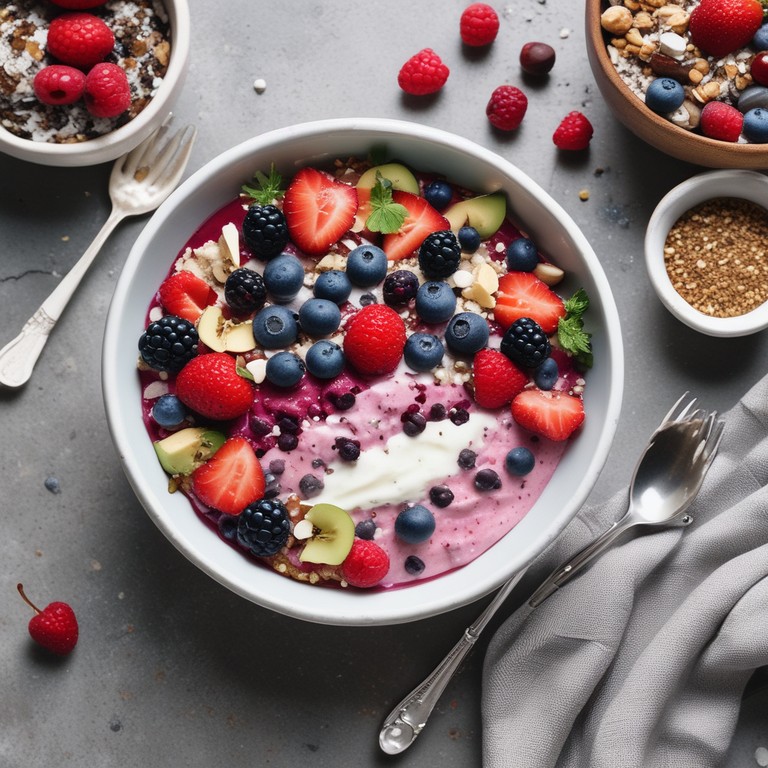 A delicious and satisfying post-workout meal that is low in carbs and high in healthy fats, perfect for those following a ketogenic diet. This bowl combines creamy Greek yogurt with fresh berries and crunchy toppings for a delightful treat.