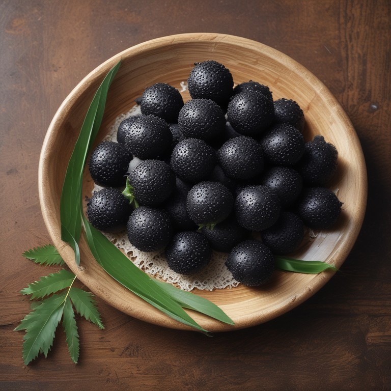 Kalo Jam is a traditional Bengali sweet made from khoya and flour, shaped into small balls and coated with black sesame seeds. These delightful treats are crispy on the outside and soft on the inside, perfect for any festive occasion.