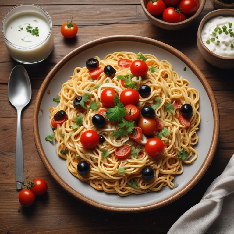Ein einfaches und schmackhaftes Nudelgericht, das mit frischen Tomaten und einer cremigen Joghurt-Sauce zubereitet wird. Perfekt für ein schnelles Abendessen ohne Würstchen!