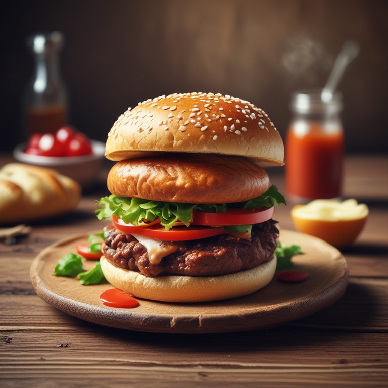 Esta receita ensina a fazer um delicioso hambúrguer caseiro com pão de farinha de trigo, perfeito para um lanche ou refeição especial.