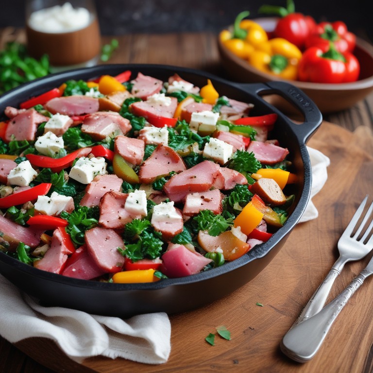 Ein einfaches und schnelles Pfannengericht, das reich an Proteinen ist und sich perfekt für ein gesundes Frühstück oder Mittagessen eignet. Die Kombination aus Schinken, Eiern und frischem Gemüse sorgt für einen köstlichen Geschmack und eine nahrhafte Mahlzeit.
