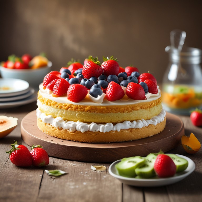 Un delicioso pastel empapado en una mezcla de tres tipos de leche, cubierto con crema suave y decorado con frutas frescas. Perfecto para cualquier celebración.